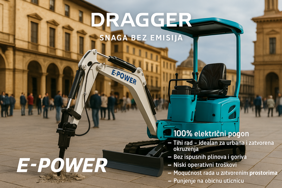 EP 12 je potpuno električni mini bager radne mase 1.200 kg iz E-Power serije DRAGGER. Namijenjen je korisnicima koji žele snagu i funkcionalnost modela PWD 12, ali u verziji bez ispušnih plinova i buke motora. Radni domet do 6 sati umjerenog rada čini ga idealnim za rad u zatvorenim prostorima, urbanim sredinama, dvorištima i osjetljivim okolišima.