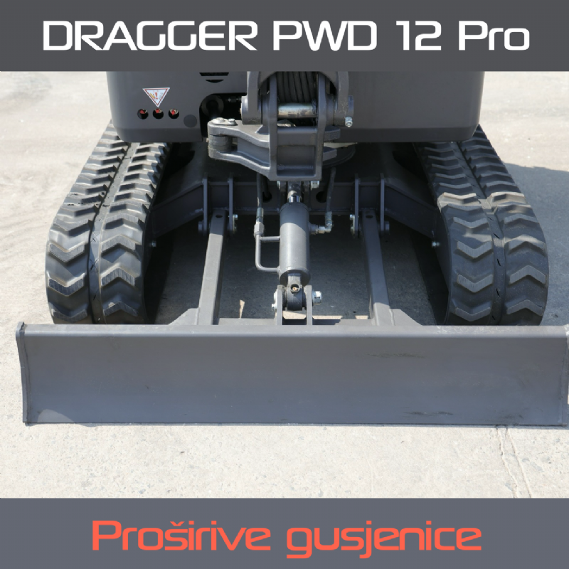 PWD 12 Pro kombinira udobnost pilot komandi, prilagodljivost gusjenica, dovoljnu snagu i izuzetnu mobilnost — sve to u stroju koji i dalje "stane" na prikolicu koja se vozi uz B kategoriju. Idealno rješenje za one koji traže profesionalnu sposobnost u kompaktnom formatu i bez dodatnih potvrda.