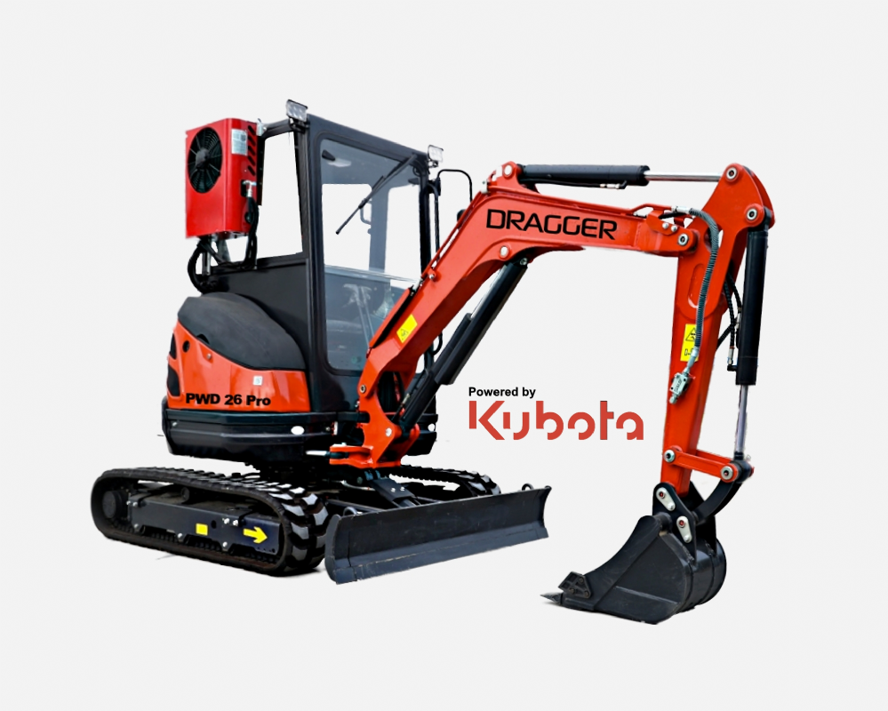 DRAGGER PWD 26 je ozbiljan 2,6‑tonski stroj za sve male građevinare koji žele raditi u svom ritmu, a ne čekati da bager završi posao čekajući da dođe na red. Namijenjen je malim građevinskim tvrtkama, komunalnim firmama, obrtima i vlasnicima imanja koji posao žele obaviti sami bez velikih troškova. Ako želite snažan, stabilan, sofisticiran i personalizirani stroj po vlastitoj mjeri koji će kopati temelje, odvodne kanale, septičke jame, raditi pripremu betonskih ploča, krčiti teren od grmlja i žbunja itd. Vrhunska pomoć za vrijedne ljude i radove koji ne trpe kašnjenje.